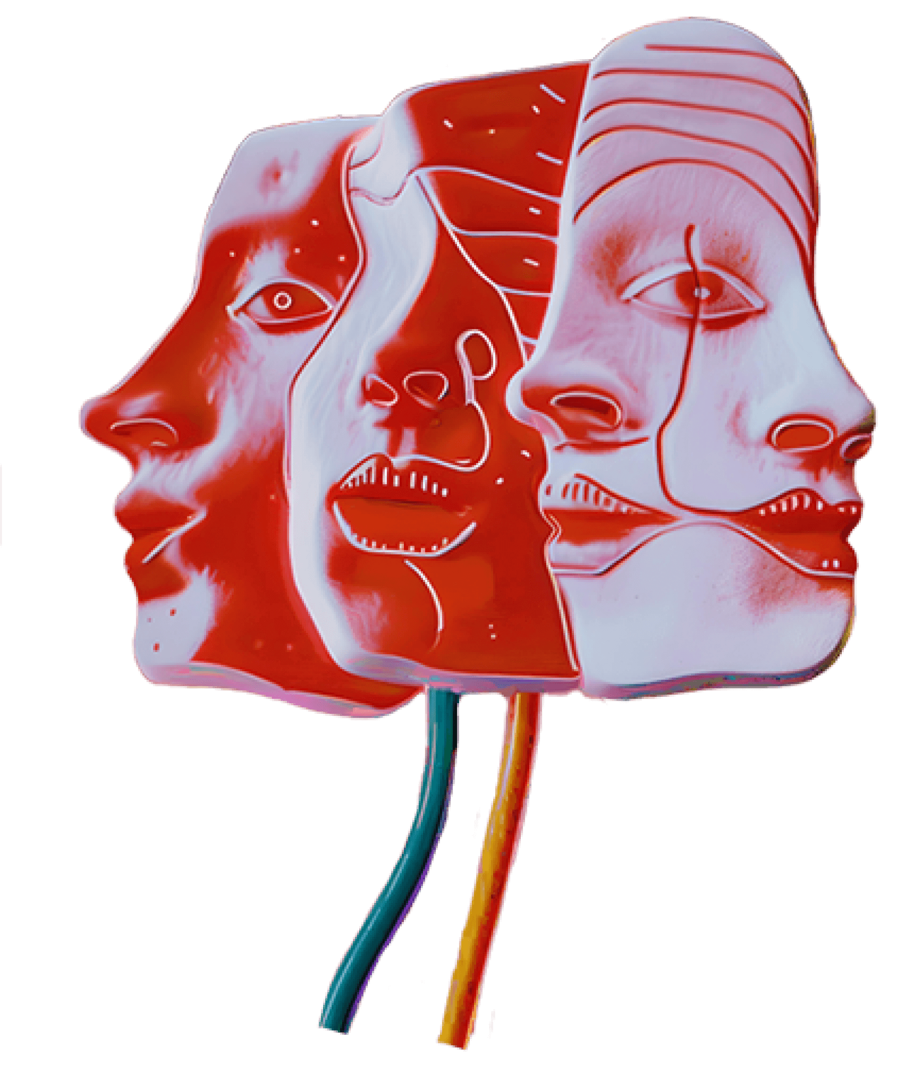 Where does role-playing end and the genuine self begin? The artist illustrates how a person simultaneously inhabits multiple realities: the one crafted for others, the one accepted as truth, and the one that remains beyond conscious awareness.